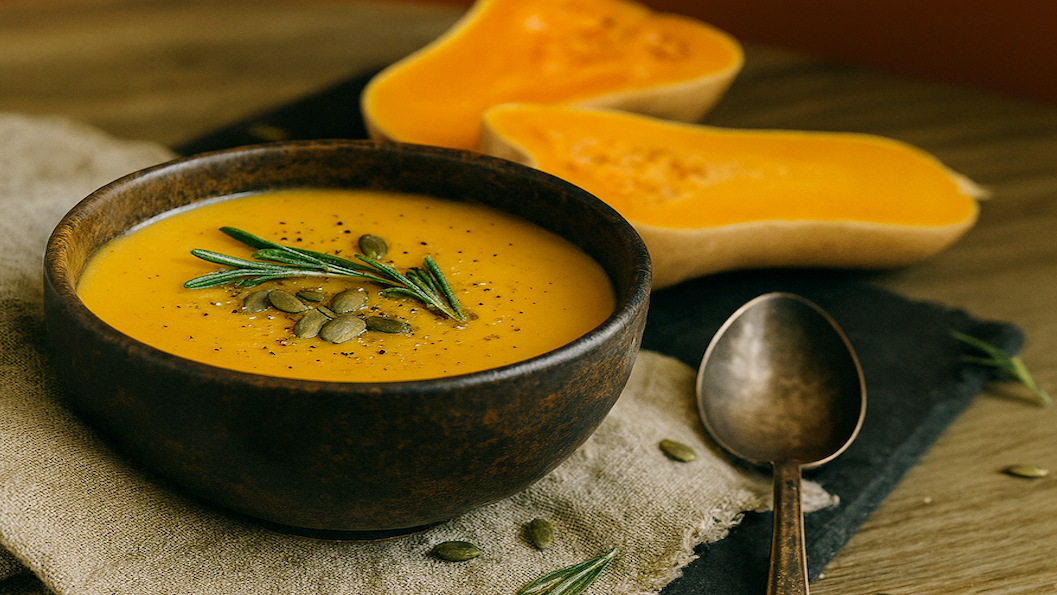 This creamy soup balances Vata, Pitta and kindles gentle fire in digestion. Squash brings seasonal sweetness, ginger adds warmth, and each spoonful offers comfort when autumn winds stir.